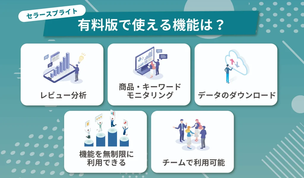 ただし、前述のとおりセラースプライトには無料版と有料版があり、利用できる機能に大きな違いがあるのです。具体的にどのような違いがあるのか、くわしく見ていきましょう。