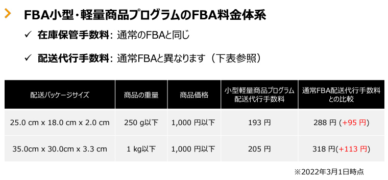 小型軽量プログラムの最大の特徴は、通常のFBA手数料よりも安いコストで配送できる点です。