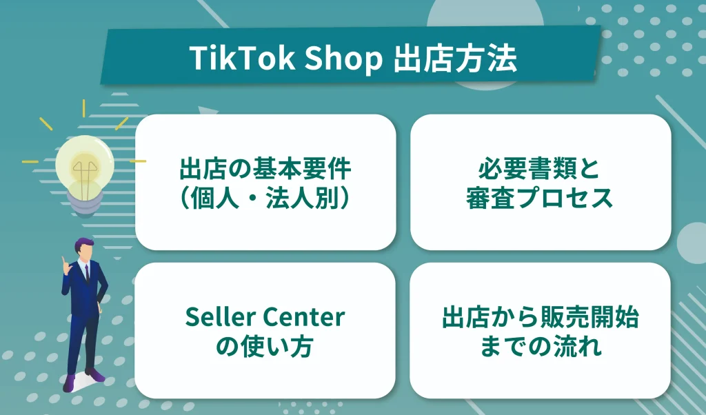 TikTok Shopへの出店は、個人事業主から法人まで幅広く対応しており、比較的シンプルな手続きで開始できます。ただし、事業形態によって必要な書類や審査基準が異なるため、事前の準備が重要です。