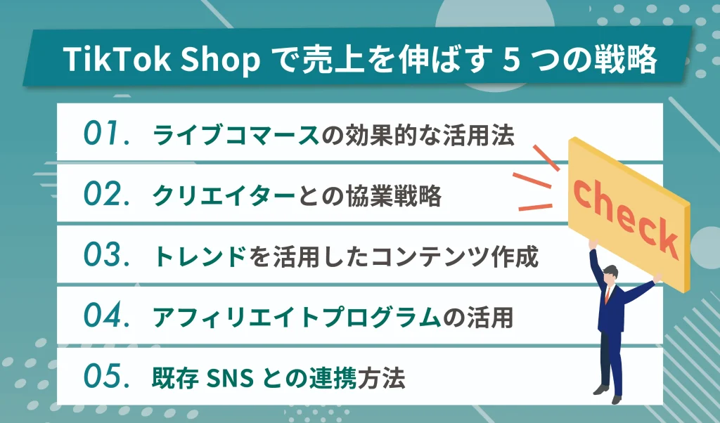 初期投資を抑えながら新しい販路を開拓したい事業者にとって、TikTok Shopは非常に魅力的な選択肢になると予想されます。