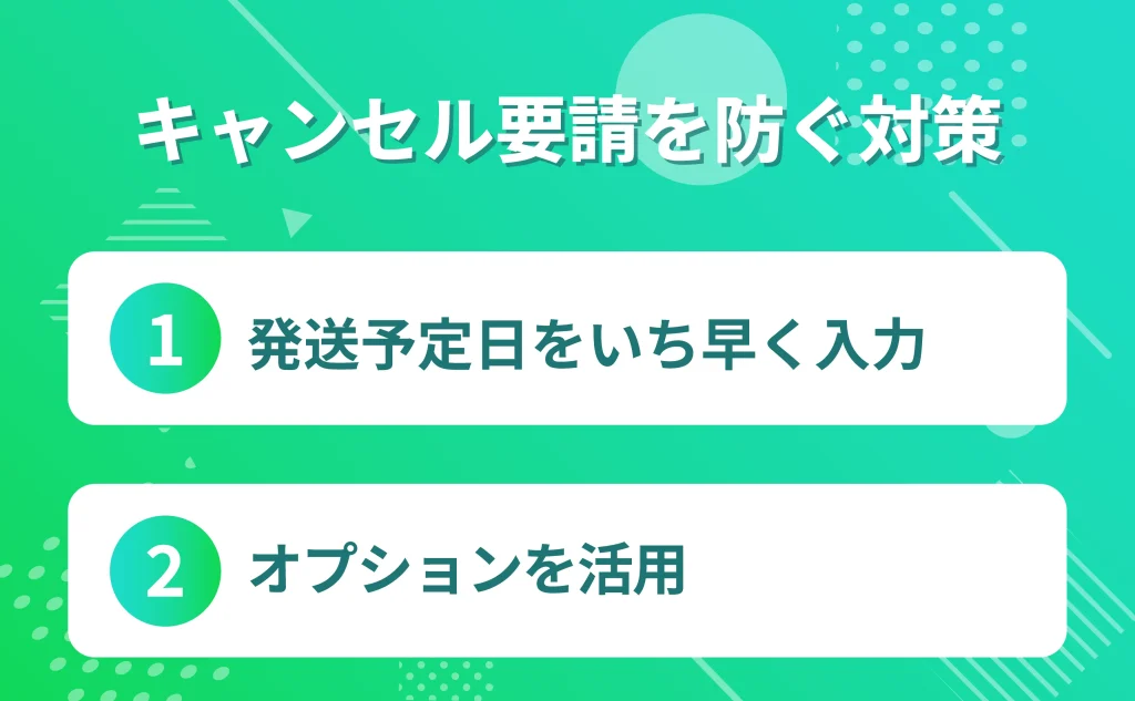 発送予定日を早めに入力し、顧客に正確な情報を伝えることで、安心感を与え、キャンセル要請を防げます。