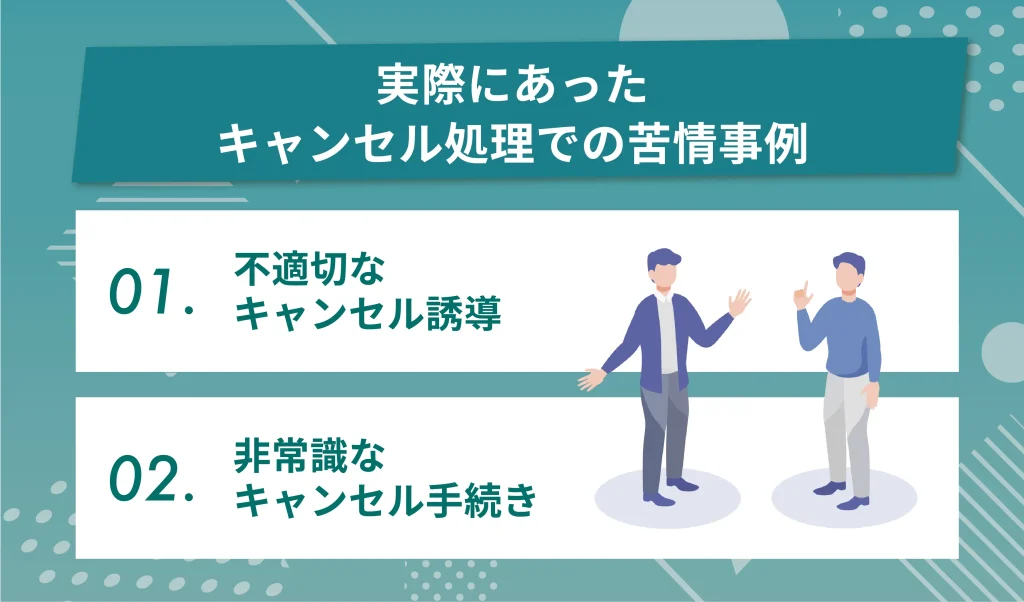 ところが、中にはお客様にキャンセルさせようとする店舗もあるのです。実際に、お客様から「店舗都合なのになぜ私たちが手続きしなければならないのか」といった苦情が寄せられています。